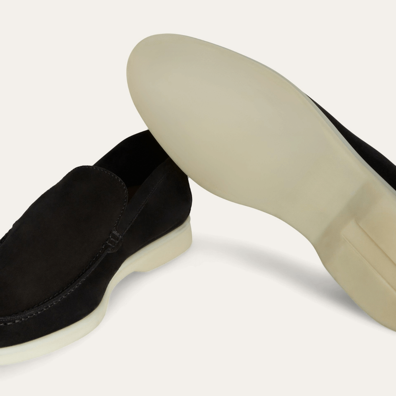Cut from premium suede and left unlined for enhanced softness and breathability, they mold effortlessly to the foot with wear. The lightweight rubber sole ensures all-day comfort, while the hand-stitched apron and side seams reflect a quiet mastery of detail. Designed for warm-weather ease, they transition seamlessly from resort paths to city streets, with or without socks.