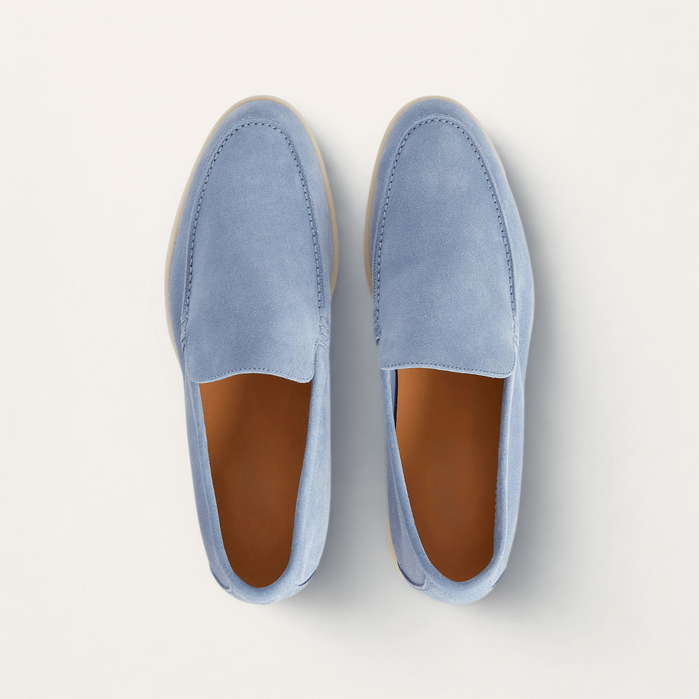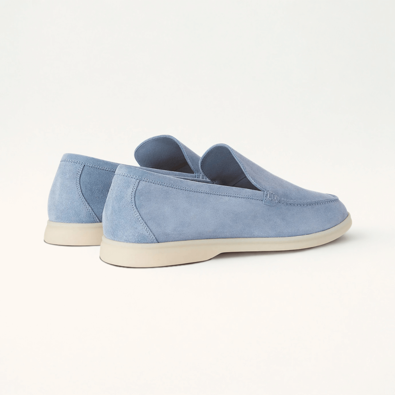 Cut from premium suede and left unlined for enhanced softness and breathability, they mold effortlessly to the foot with wear. The lightweight rubber sole ensures all-day comfort, while the hand-stitched apron and side seams reflect a quiet mastery of detail. Designed for warm-weather ease, they transition seamlessly from resort paths to city streets, with or without socks.