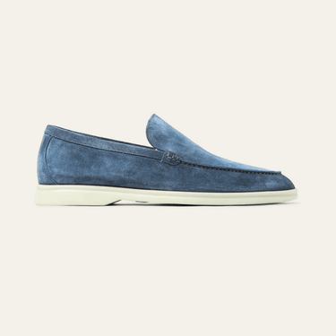 Cut from premium suede and left unlined for enhanced softness and breathability, they mold effortlessly to the foot with wear. The lightweight rubber sole ensures all-day comfort, while the hand-stitched apron and side seams reflect a quiet mastery of detail. Designed for warm-weather ease, they transition seamlessly from resort paths to city streets, with or without socks.